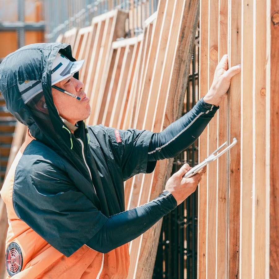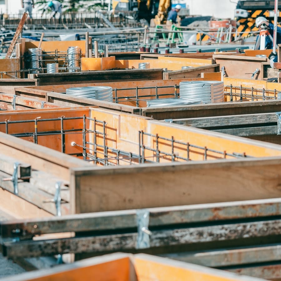 建物の躯体を形づくるコンクリートを流し込むための型枠を作成します。 通常は前工程の鉄筋工事の後に、コンパネや支保材を組み立て、そこへコンクリートを打設します。 コンクリートが十分に硬化した後、型枠を取り外し、次の工程へと引き継ぎます。